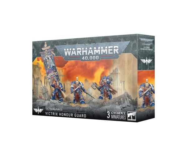 Con este kit multicomponente de plástico puedes montar tres Guardias de honor Victrix, guardaespaldas de élite de los Marines Espaciales para tus ejércitos de Ultramarines de Warhammer 40,000. Estos guerreros poderosos y resistentes garantizarán que tus principales líderes estén a salvo el mayor tiempo posible, aumentando a la vez el poderío de tu fuerza. Este kit altamente personalizable incluye grebas, hombreras, carabinas bólter artesanales, hachas de energía y seis cabezas con casco intercambiables. Uno puede montarse como Campeón del Capítulo con armas de honor, y otro puede montarse como Anciano del Capítulo con un arma de energía artesanal y el inspirador Estandarte de Macragge.